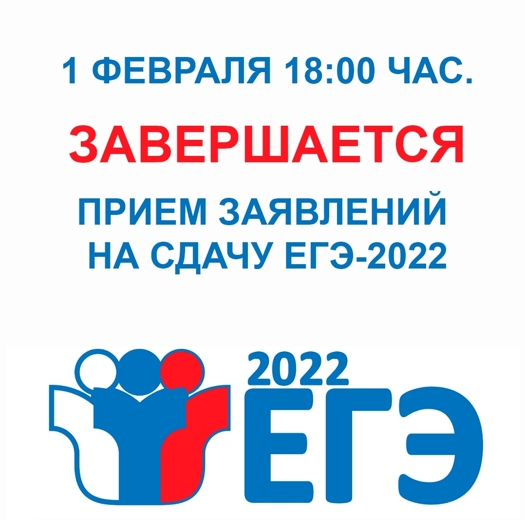 1 февраля 18:00 час завершается прием заявлений на сдачу ЕГЭ 2022.