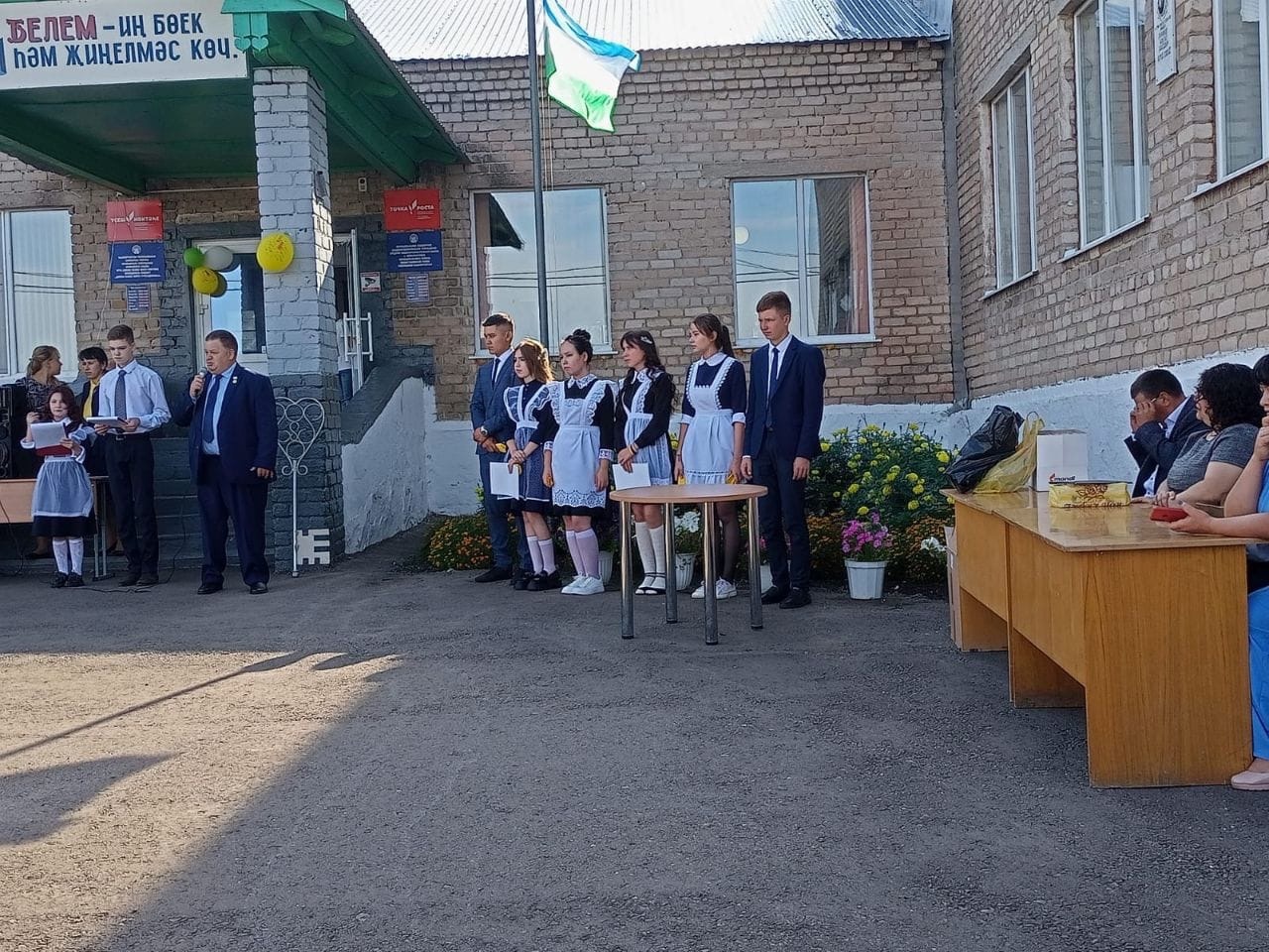 Традиционная линейка, посвящённая Международному Дню знаний и в этом году в МБОУ СОШ с.Имянликулево была торжественной и красочной. Торжественная Линейка началась с поднятия государственного флага Российской Федерации и государственного флага Республики Башкортостан, а также исполнения государственного гимна. Директор школы Муратова Гульназ Тагирьяновна поприветствовала учеников и их родителей праздничной речью и пожелала им успехов в предстоящем учебном году.